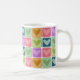 Bunte Herzen in farbigen Quadraten verzieren diese reizend und romantische Tasse, die für Valentinstag, Jungvermählten oder jedermann in der Liebe perfekt ist, oder die Liebe-Liebe!