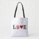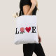 Liebe Herz und rosa Rosa Blume auf weißem Hintergrund Tote Beutel.