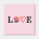 Liebe Herz und rosa Rosa Blume auf rosa Hintergrund Square Magnet. Möge deine Liebe wie eine schöne Blume blühen!