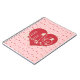 Eine niedliche und romantische Illustration gerade rechtzeitig zum Valentinstag oder das ganze Jahr über, um Ihren skurrilen Stil auszudrücken. Retro 60er Design. Ein großes rotes Herz mit dem Wort Liebe geschrieben in einem lustigen und fröhlichen Schriftart. Eine Gruppe von Sternen umgibt den Text. Der Hintergrund ist in Weiß, Rot und Rosa gehalten, auf pastellrosa Unterlage.
