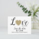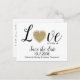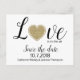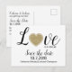 Liebe ist in der Luft themed Hochzeit speichern Sie das Datum Postkarte, mit der Grafik eines goldenen glittery Herz. Personalisieren Sie die benutzerdefinierten Textfelder, um Ihre Anforderungen zu Anzug zu bringen. Eine tolle Möglichkeit, Ihre Hochzeitsvorbereitungen im Voraus anzukündigen.