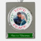 Dies ist ein hübscher 1. Weihnachtsgeschmack oder Sake-Verzierung für ein verlobtes oder frisch verheiratetes Paar. Es zeigt Ihr eigenes Foto mit einem weißen Rahmen mit dem Text in rot und grün LIEBE HOPE JOY PEACE rund um den Rand. Am unteren Ende des Ornaments befindet sich Ihr Text in Weiß auf einem Holiday Green Hintergrund. Personalisieren Sie es, oder lassen Sie es sagen, was Sie wollen!