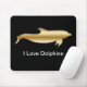 Mousepad Delphine der Liebe I mit cooler Golddelphingraphik und -wörtern "ich Liebe-Delphine,", das Sie besonders anfertigen oder personifizieren können. Entworfen für jedermann, das Delphinsachen sammelt, ein Natur- oder Tierliebhaber ist oder mag Unterwasserleben.