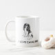 Tasse mit dem doppelseitigen Entwurf, der einen unbekümmerten Königcharles Spaniel kennzeichnet. Künstlerentwurf. Für den unbekümmerten Hundeliebhaber!