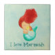 Jeder Lieben Meerjungfrauen. Wenig rote Haarmeerjungfrau umarmt niedliche entzückende Fische. Sie ist gerade so schön, wie es möglich ist. Und das ist warum jeder Lieben diese Meerjungfrau, fantastisches Geschöpf von tiefem Meer.