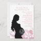 Kennzeichnen Sie das *ultrasound des Babys in diesem schönen Babypartyentwurf. Der weiße Hintergrund hat die rosa und weiße Blumen und Wirbel und eine Silhouette einer schwangeren Frau mit einem Baby in ihrer Geb5rmutter. *Do einen Ultraschall des Babys nicht haben? Verwenden Sie diesen generischen bereitgestellten Ultraschall.