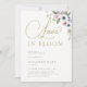 Eine elegante und moderne Brautdusche "Liebe ist in Bloom" mit einem blühenden Aquarellrahmen aus weißen Anemonen, rosa Rosen, Spachteln und Blume in einer üppigen Blumenstruktur. Diese elegante Brautdusche lädt außerdem zu romantischer, moderner Kalligraphie mit großen Schnörkeln und einem goldenen Farbtupfer im Titel und im Rücken ein.