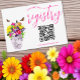 Liebe ist in Blüte! Eine lebendige Hochzeitskollektion mit Blumenstrauß in einer Marmorvase, umgeben von Schmetterlingen und begleitet von Fuchsienscripttypografie.