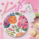 Liebe im blumengeschmückten Brautparty Tischdekor Pappteller