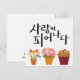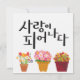 Koreanische Kalligraphie mit "사 랑 피 나 다" (Liebe in Bloom) mit pulsierenden getöpften Blume. Ein fröhliches und inspirierend Design für Geschenke, Drucke und Lifestyle-Gegenstände.