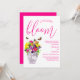 Liebe ist in Blüte! Eine lebendige Hochzeitskollektion mit Blumenstrauß in einer Marmorvase, umgeben von Schmetterlingen und begleitet von Fuchsienscripttypografie.
