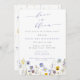 Blue & Yellow Stiefmütterchen Wildblumen Bridal Dusche Einladung perfekt für Frühling mit der Schlagzeile "Liebe in Blüte" in der modernen Kalligraphie.