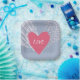 Liebe auf einem roten Herz geschrieben mit einem schönen Hintergrund. Dieses Design wirkt auf diese Paper-Teller sehr effektiv