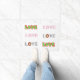 Ein Retro-Stil-Türmchen mit LIEBE darüber geschrieben. LIEBE, LIEBE, LIEBE, LIEBE, LIEBE. Das Doormat ist von hoher Qualität und wird über Jahre dauern, um den lassend Gästen zu zeigen, was sie beim Überschreiten der Schwelle erwarten. LIEBE.