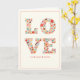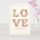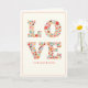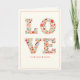 Eine elegante, gefaltete Grußkarte mit gestapelten Buchstaben, die "LIEBE" in floralen und geometrischen Mustern mit abgerundeter Kante buchstabieren. Anpassbarer Nachrichtentext Perfekt für den Valentinstag, den süßen Tag, den Hochzeitstag oder jeden Tag! Erhältlich in einer kuratierten Auswahl an lebendigen Hintergrundfarben. Auch als moderne Flachbild-Karte erhältlich.