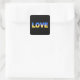 LIEBE in Blau und Gelb auf schwarzem Stand mit Ukr Quadratischer Aufkleber