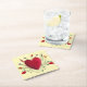 Set von Quadrat 6 bogte Massenbrett-WegwerfUntersetzer mit einem Vintagen Vierzigerjahre Bild eines Spitze-getrimmten Herzens unter bunten Blumen in der Blüte auf weich Gelb aus. See PlastikUntersetzer, Sandstein-Untersetzer und Servietten zusammenbringend. Sehen Sie die gesamte Untersetzersammlung des Valentines Tagesim FOOD/BEV | Untersetzerabschnitt.