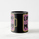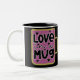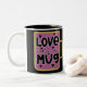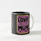 "Liebe in Tasse" schwarz mit rosa, schwarz und goldfarbenem Rahmen. Geben Sie jemandem die Liebe für den Valentinstag
