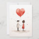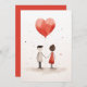 Eine minimalistische und herzerwärmende Abbildung eines Paares, das Hände hält, verbunden durch einen roten, herzförmigen Ballon, der über ihnen schwimmt. Das schlichte Design, die Aquarelltextur und die sanften Farbspritzen auf weißem Hintergrund verleihen dem Kunstwerk ein sanftes, traumhaftes Ambiente, das Liebe und Zusammengehörigkeit auf eine reine, unschuldige Art und Weise symbolisiert.