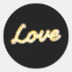 Dieser Aufkleber wird mit dem Wort "LIEBE" in Vintagen Markierungsleuchten auf schwarzem Hintergrund betont.