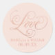 Liebe in Rose Gold Script Blush Wedding Monogram Runder Aufkleber