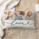 Modernes und stilvolles Design im Stil eines Lumbalwirbelkissens mit einer Foto-Collage von drei (3) beliebten Fotos mit einem schlichten und minimalen schwarzen "Liebe" Typografie-Design, das blüh- und Herzdetails enthält. Die Farben Schwarz und Weiß können geändert werden.