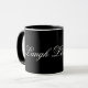 Schwarz-Weiß-Designer-Kaffeetasse. Der schwarze Hintergrund kann auf eine beliebige Farbe umgeschaltet werden. Das Lachen, Liebe Live-Text kann zu jeder Nachricht personalisiert werden. Der Text ist ebenfalls abnehmbar.