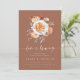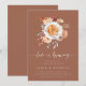 Herbst in Liebe mit diesen romantischen Einladungen für Ihren Herbst Probe Brunch. Elegantes Design mit einem warmen Terrakotta-Hintergrund, geziert mit einem Strauß aus pastellfarbenem Erdton, boho Aquarellfarben Blume, die eine perfekt vorbereitete Kaffee Latte. "Liebe ist Brewing" erscheint in skizzierten, kursiven Schriftzeichen; personalisieren Sie Ihre Probe mit den Details des Brunch in weichem Offweiß.