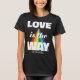LIEBE ist die WAY, was für eine wunderschöne Erklärung der Liebe für den T - Shirt der schwarzen Frauen. "LIEBE" und "WAY" werden in einem modernen massiven weißen Schriftart gedruckt, während "ist das" kleiner in kursiv geschrieben ist. Unter dem Text wird der Weg durch eine Straße in Perspektive mit Regenbogenstreifen in 6 Farben (rot, orange, gelb, grün, blau, lila) vorgeschlagen. Natürlich ist dieses Design LGBTQ+ freundlich. Am unteren Rand befindet sich ein individualisierbarer Name, der in einer modernen, weiß gepunkteten Schrift geschrieben ist. Bitte ersetzen Sie den Standardnamen durch den von Ihnen gewählten.