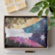 Aquareller Hund warten: Silhouette gegen Vollmond, farbenfroh mit Wolken und Bäumen, Ai Generated Art von minx267