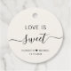 Schick helle Creme Geschenkanhänger für Ihre Gastgeschenke Hochzeiten mit "Liebe ist süß" in einfacher Schrift und ein elegantes Drehbuch mit Swashes, Ihre Namen durch ein Herz verbunden und Ihr Hochzeitstag.