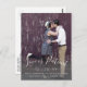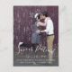 Zurückgestellt Ankündigung mit handgeschriebenen weißen Skript-Overlay-Design "LIEBE IST PATIENT" Foto Hochzeitsankarte vertikal. Versenden Sie Ihre Datumskarten als verlobtes Paar mit dieser wunderschönen, einfachen Save the Date Postkarte mit weißem Text-Overlay-Design. Design von Elke Clarke© . Ersetzen Sie das Beispiel-Foto durch das eigene. Fügen Sie Ihre persönlichen Daten vorne und hinten hinzu.