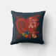 Ein hübsches Kissen, das perfekt für das Valentinstag Geschenk ist, aber das ganze Jahr über gut zu benutzen ist, mit einem blauen und roten Vogel, einem großen roten Herz, kleineren Herzen von Rot, und Text, der Liebe liest, ist in der Luft!