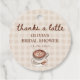 Verleihen Sie Ihrer Feier mit diesen Love is Brewing Gingham Coffee Bridal Shower Geschenk Favor Tags eine warme und charmante Note. Mit einem Wasserfarben-Latte mit Herz-Schaumkunst, Kaffeebohnen, "Thanks a Latte" in trendiger Schrift-Kalligrafie und einem weichen beigen Gingham-Hintergrund ist dieses gemütliche Café-inspirierte Design perfekt für eine rustikale oder herbstliche Bridal Shower. Diese editierbaren Favor-Tags passen hervorragend zu passenden "Love is Brewing"-Einladungen, Dekorationen und Schreibwaren aus der Kollektion.