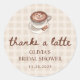 Verleihen Sie Ihrer Feier mit diesem klassischen runden Aufkleber "Love is Brewing Gingham Coffee Bridal Shower Favor" eine süße Note. Mit einer Wasserfarben-Latte mit Herz-Schaum-Kunst, Kaffeebohnen, "Thanks a Latte" in trendiger Schrift-Kalligrafie und einem beigen Gingham-Hintergrund bringt dieses gemütliche Café-inspirierte Design Wärme und Charme in Ihre Bridal-Shower-Geschenke. Perfekt für eine Herbst- oder neutrale Themenveranstaltung, passen diese Aufkleber wunderbar zu passenden "Love is Brewing"-Einladungen, Geschenkanhängern und Dekorationen aus der Kollektion.