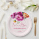 Liebe ist in Blüte Pink magenta pfirsichpfirsichfarben elegante Brautparty Monogramm bedruckte Papierplatte stemplate , lebendige fette Farben moderne lässige Typografie personalisierte Brautparty Tischdekor