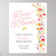 Liebe ist in blühenden Wildblumen florale Brautparty Begrüßungszeichen mit hübschen handgemalten lebendigen und hellen orangen, rosa und gelben Blumen Aquarellbilder mit einer modernen eleganten Sprichwort-Schriftart-Liebe in Blüte, mit bohemianischem Grün. Ideal für Frühling, Sommer im Freien Garten Braut oder Hochzeitsfeier.