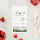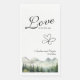 Ein elegantes Hochzeitsdesign mit Aquarellbergen und Kiefernbäumen, das Sie mit Ihren Details individuell gestalten können.