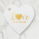 Elegante, herzförmige Goldfolie bedruckte Gastgeschenk Hochzeit-Tag mit dem Thema Liebe ist in der Luft, fertig in Gold. Die Rückseite des Tags ist bereit, mit schwarzem Text zu personalisieren, um zu lesen, was Sie gewollt haben.