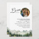 Eine elegante Einladung zur Hochzeit mit Aquarellbergen und Pinienbäumen, die Sie mit Ihren Details anpassen können.