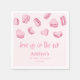 Eine hübsche und romantische Brautparty-Papierserviette im Valentinstil mit Darstellung der herzförmigen Makaronen in Rosa. Im Text steht: "Liebe ist in der Luft."