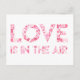 NewParkLane - Postcard, Zitat: "Liebe ist in der Luft" in fett gedruckter Typografie mit Mustern verschiedener Farbtöne und Größen rosa Herzen. Niedliche Karte für den Versand Ihrer Hochzeitsnacht- oder Brautduscheinladungen oder für den Versand Ihrer Valentinstag Card.