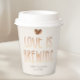Servieren Sie Getränke stilvoll mit diesen eleganten Love Is Brewing Kaffeepapierbechern, die für kaffeeorientierte Hochzeiten, Brautduschen und Verlobungsfeiern konzipiert sind. Mit warmen neutralen Tönen, einem handgemalten Kaffeebohnenherz und individuell anpassbaren Namen und Datum verleihen diese Becher Ihrem Event eine stimmige und polierte Note.