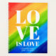 Dieser Gay Pride-Planer ist mit LIEBE IS LIEBE in fett-weiße Typografie auf einem Aquarell-Regenbogen-Hintergrund von Rot, Orange, Gelb, Grün und Blau dekoriert. Einfach anpassbar mit Ihrem Namen und Jahr. Original Wasserfarbe © Michele Davies.
