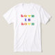 T - Shirt mit Text in Regenbogenfarben. Auf der anderen Seite steht das Symbol der LGBT-Gemeinschaft
