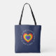 Feiern Sie den LGBTQ-Stolz mit einem bunten Regenbogenherz, umgeben von den Worten "LIEBE IS LIEBE IS LIEBE", die in weißem Text auf marinebaublauem Hintergrund auf beiden Seiten der Tasche wiederholt werden. Das Herz besteht aus rot, orange, gelb, grün, blau und violett konzentrierten Herzen. Perfekt für Stolz und für Verbündete. Copyright ©Claire E. Skinner, Alle Rechte vorbehalten.
