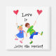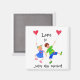 Der quadratische Magnet mit einem handgemalten Papiercollage-Motiv von 'Liebe ist...zusammen albern sein!"