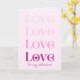 Suchen Sie eine einfache, aber bewegende Nachricht für Ihren Liebsten? Dann sind Sie an der richtigen Stelle! Die Liebe Be My Valentine Grußkarte ist die perfekte Wahl für Ihr Valentin! Die Karte enthält viermal das Wort "Liebe", beginnend mit einer sehr schwachen "Liebe", die schließlich in einer dunkelrosa "Liebe" endet. Unter der letzten "Liebe" finden Sie die Worte "Be my Valentine" in derselben dunkleren rosa Farbe. Innerhalb der Karte, auf der links, ist ein Herz & blüh Design. Rechts können Sie Ihren eigenen Text einfügen. Und wenn Sie möchten, ist es möglich, den Text auf der Außenseite für Jubiläen, Hochzeiten, Geburtstage und andere besondere Anlässe zu ändern!