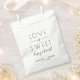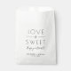 Liebe ist süß, genieße eine Leckerei! Diese einfachen, modernen San-Serif-Taschen in Schwarz-Weiß-Leckerei eignen sich hervorragend für Hochzeitsfeiern, Brautparty, Babydusche oder Geburtstagsfeiern, um nach der Feier Zuhause einige Leckereien (Süßigkeiten, Donuts, Kekse, Popcorn) zu nehmen. Personalisieren Sie einfach Ihren Namen, Ihre Veranstaltung und Ihr Datum.