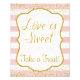 "Liebe ist süß nehmen eine Leckerei" Gastgeschenke Tafelschild für Bridal oder Polterabend Farben: Rosa und Gold